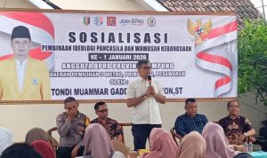 Pesawaran – Anggota DPRD Provinsi Lampung, Yudha Alhadjid, menegaskan bahwa pengamalan nilai-nilai Pancasila tidak cukup berhenti pada tataran slogan, melainkan harus dimulai dari lingkungan paling dasar, yakni keluarga. Hal tersebut disampaikannya dalam kegiatan Sosialisasi Pembinaan Ideologi Pancasila dan Wawasan Kebangsaan yang digelar di Desa Kota Jawa, Kecamatan Way Khilau, Kabupaten Pesawaran, Minggu (18/01/2026).